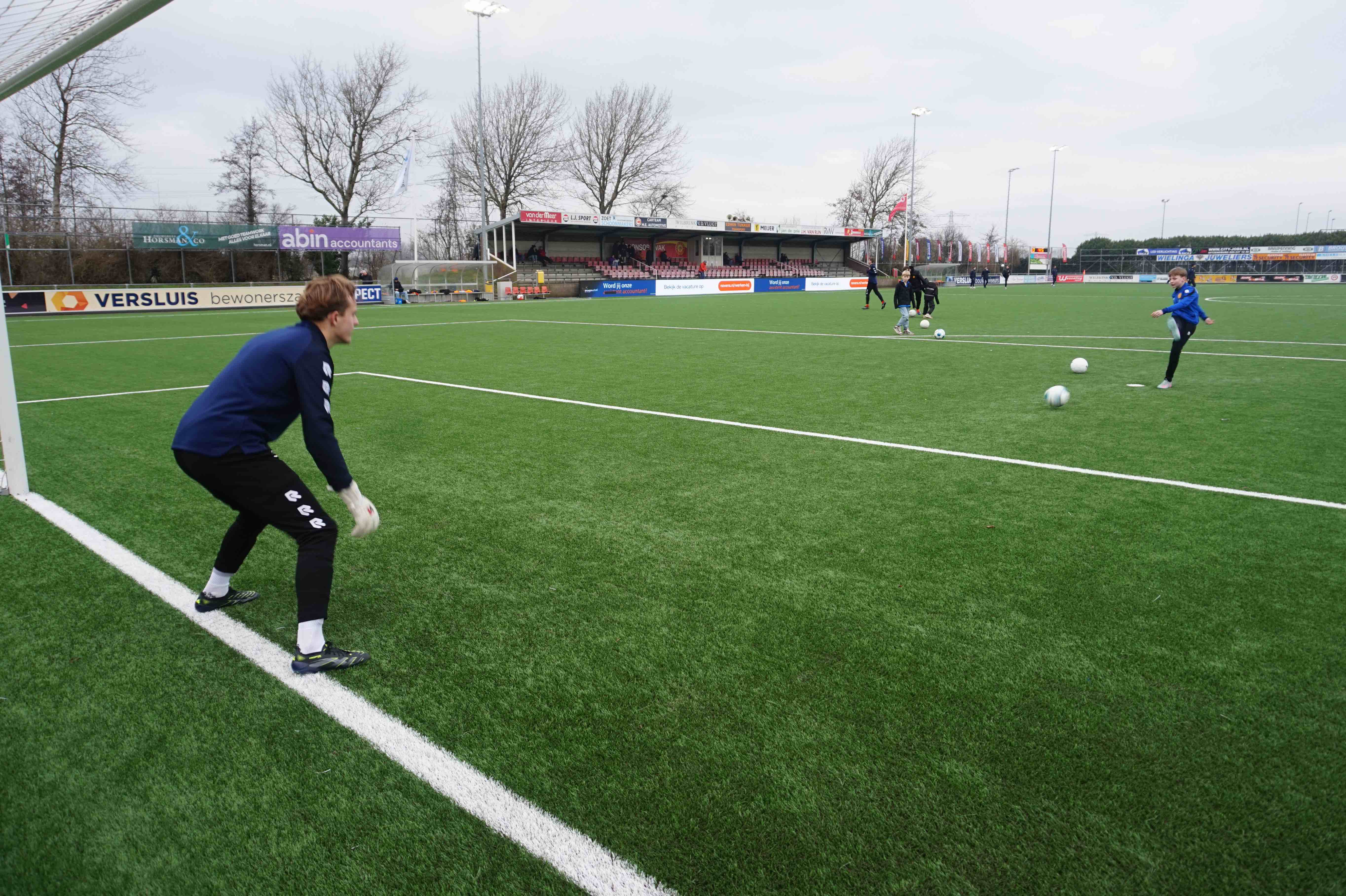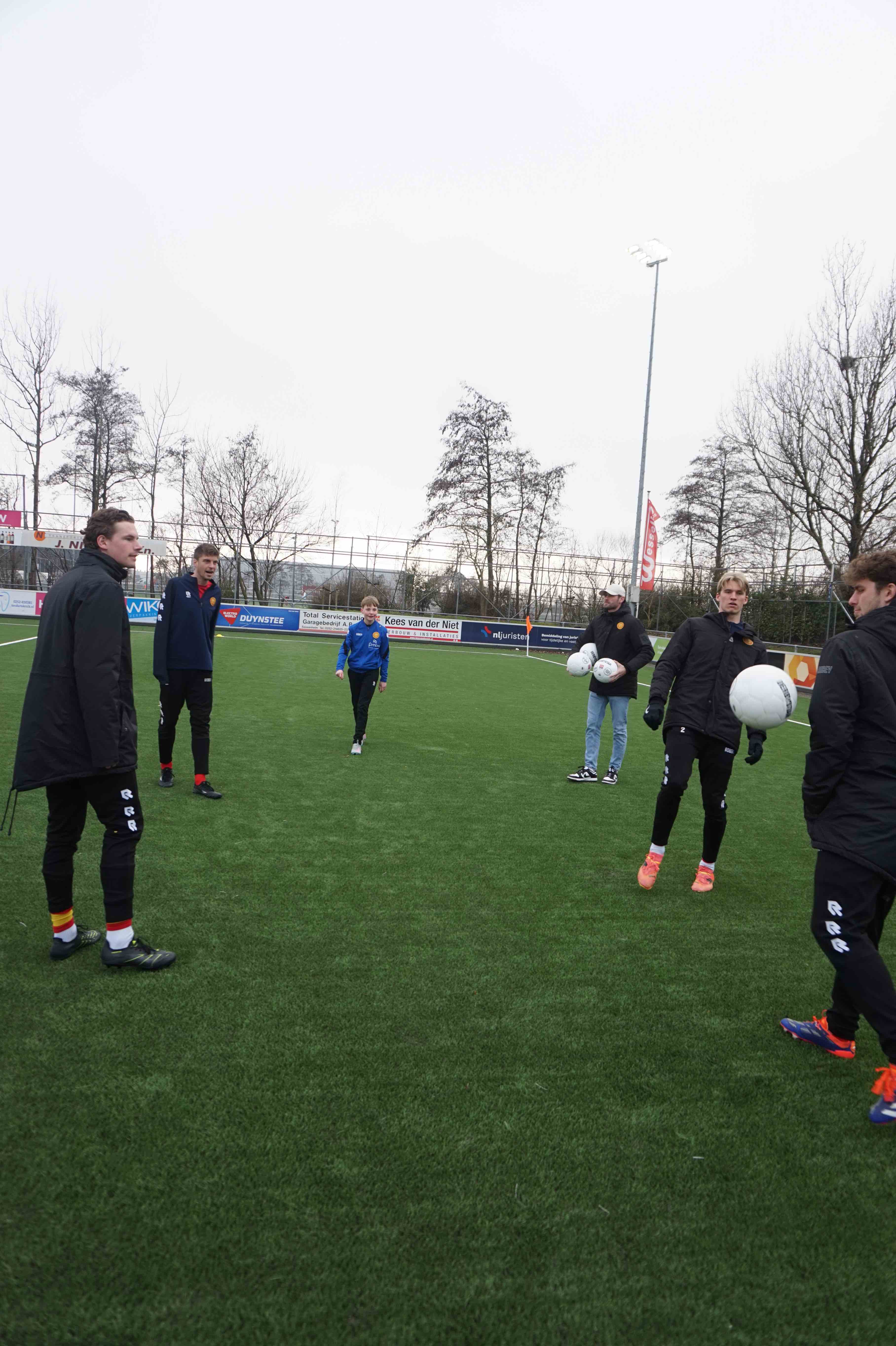 We gingen naar de kleedkamer en ik werd heel aardig ontvangen door iedereen. Hier gingen we omkleden en gingen we het veld op voor de warming up. Ik ging over passen met een aantal spelers.
